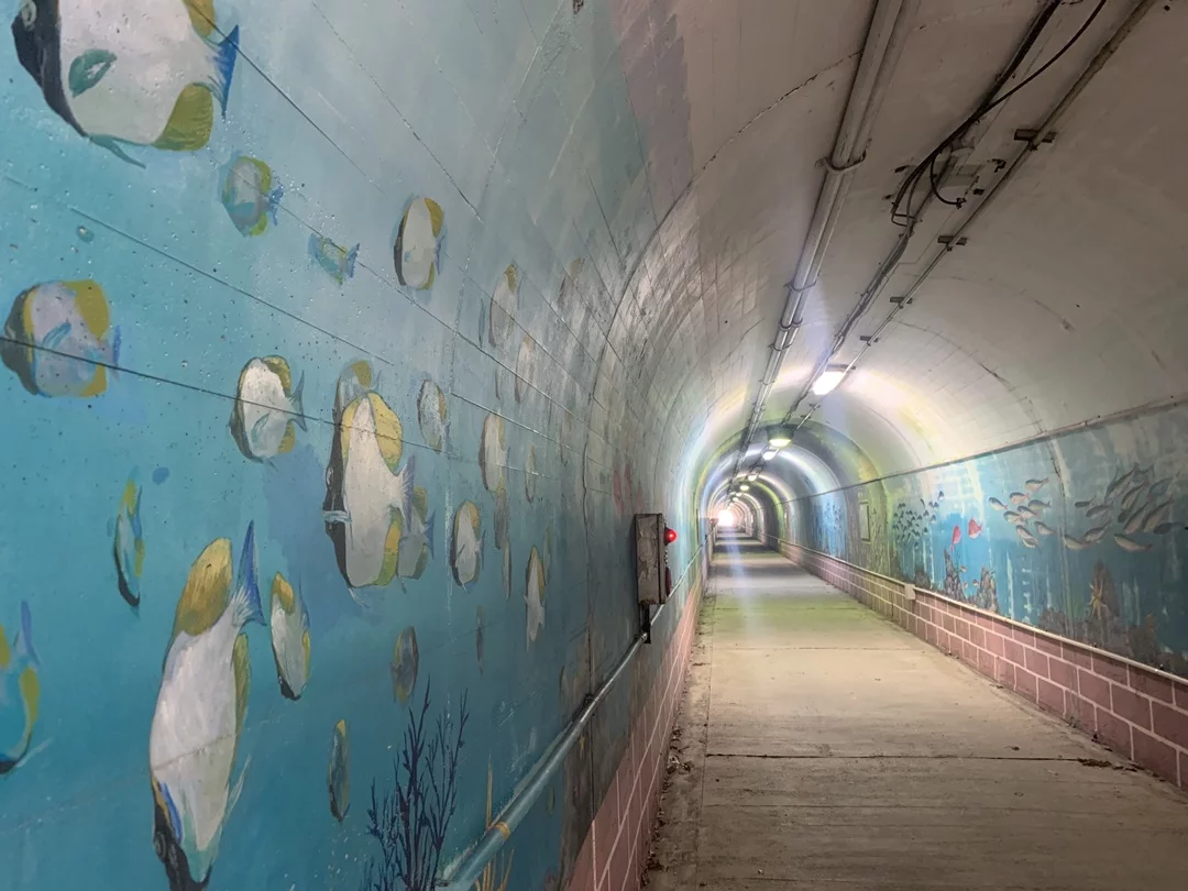 歩道のトンネルへと移動です。まあ、こういう狭い人道トンネル嫌いじゃないです。むしろワクワクする。