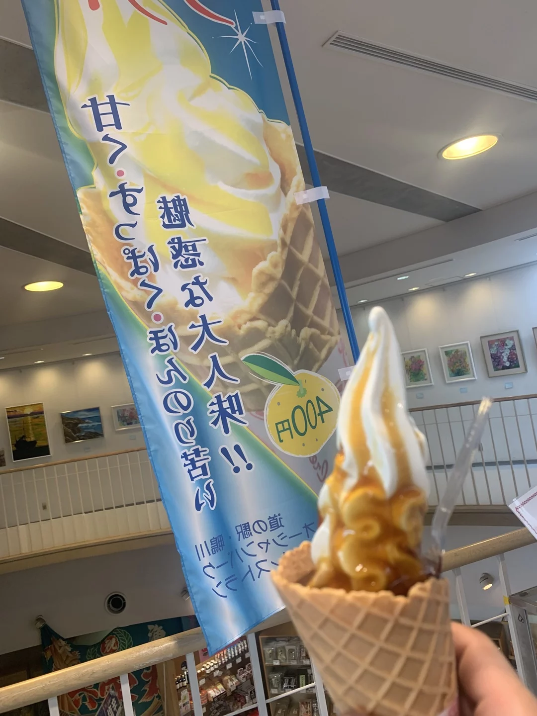 道の駅『鴨川オーシャンパーク』で夏みかんソースのソフトクリーム