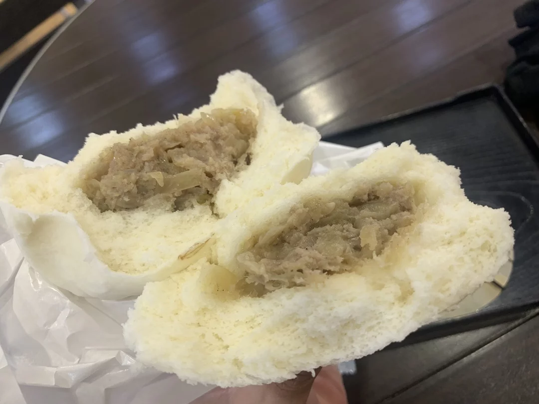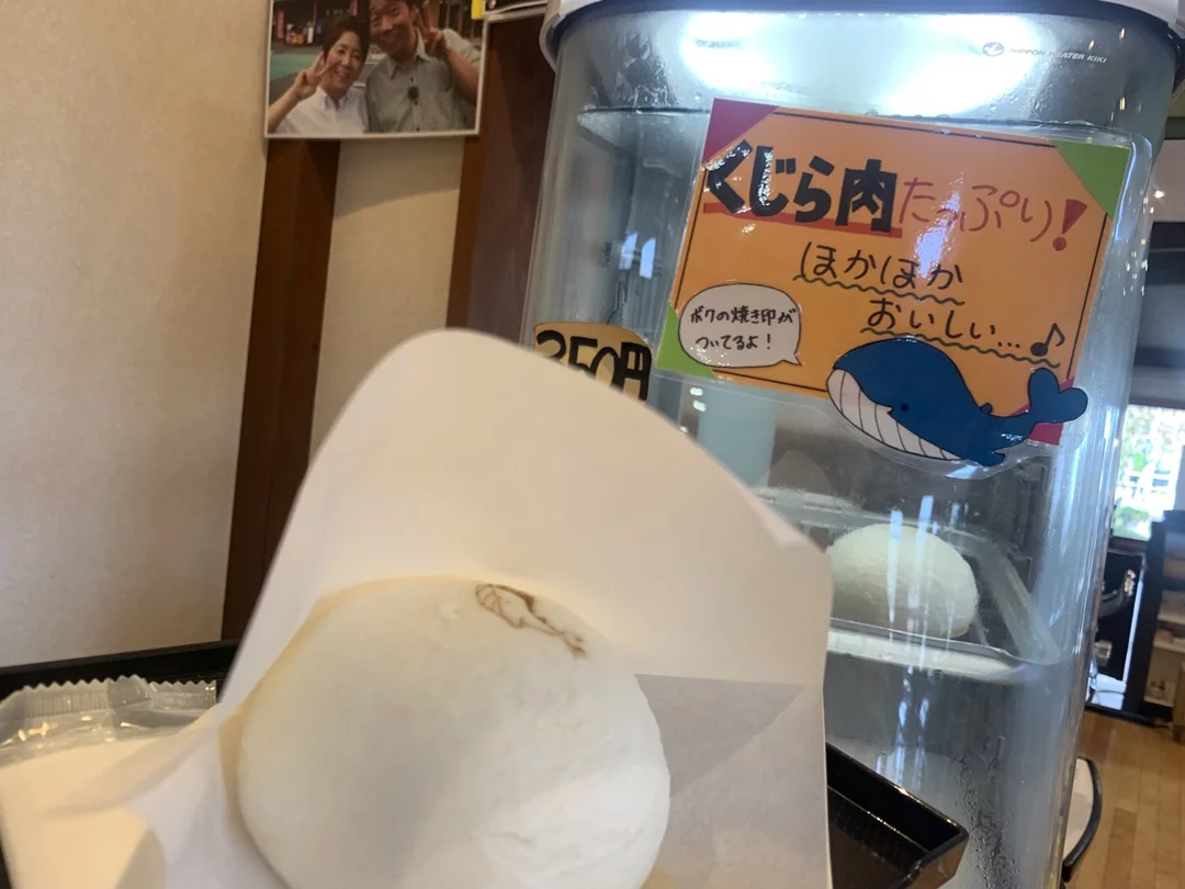 レストランには鯨料理が目白押しでしたが、がっつり食べずに小まめに補給することにして、くじら肉まんにしてみました。