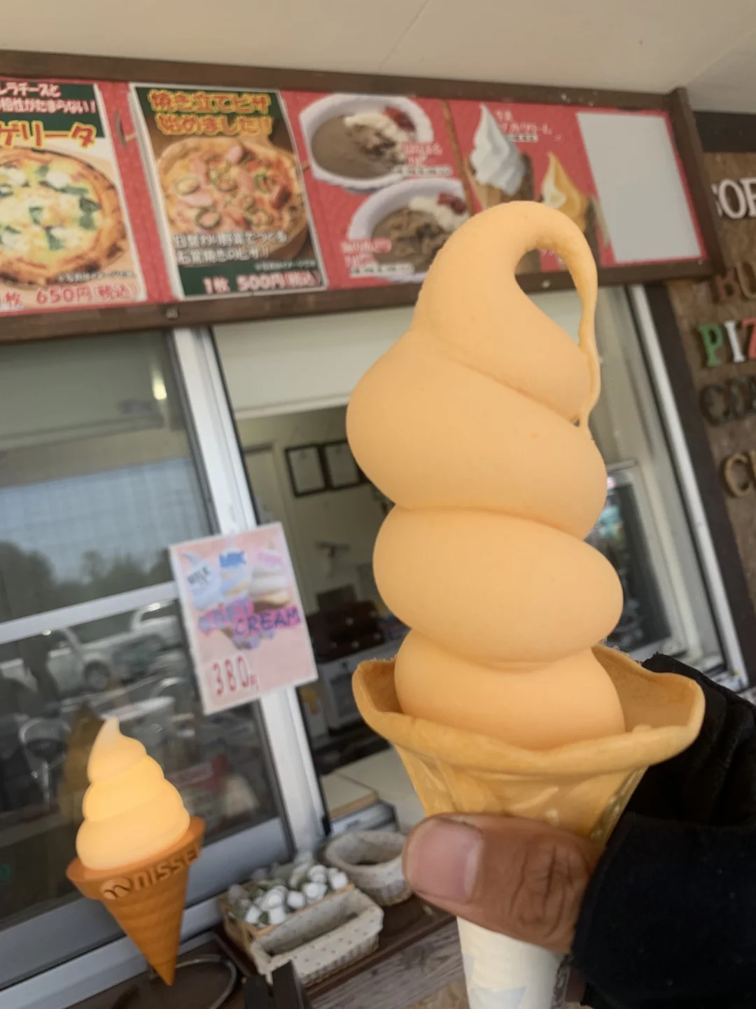 びわソフトクリームで補給。シャーベット状でビワの甘さもちょうどいいです。3月にも食べたはずですがこんなに大きかったっけ?