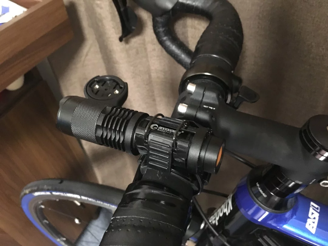 ロードバイクに取り付けて見たところ。これでナイトライドが楽しみになりました。