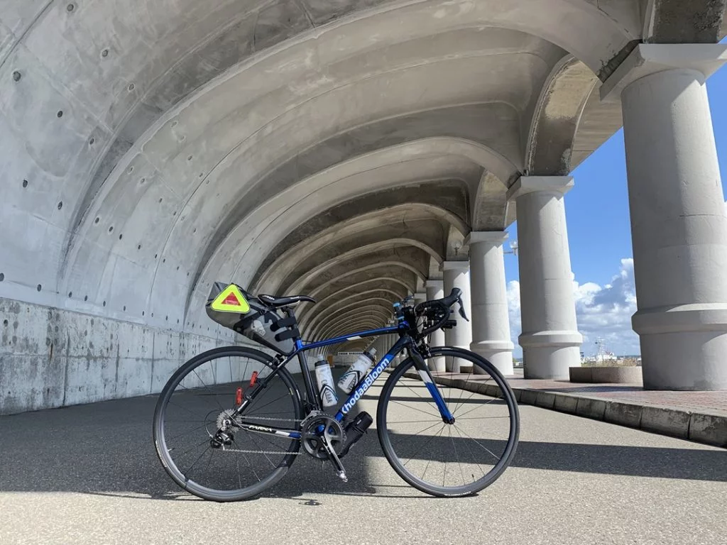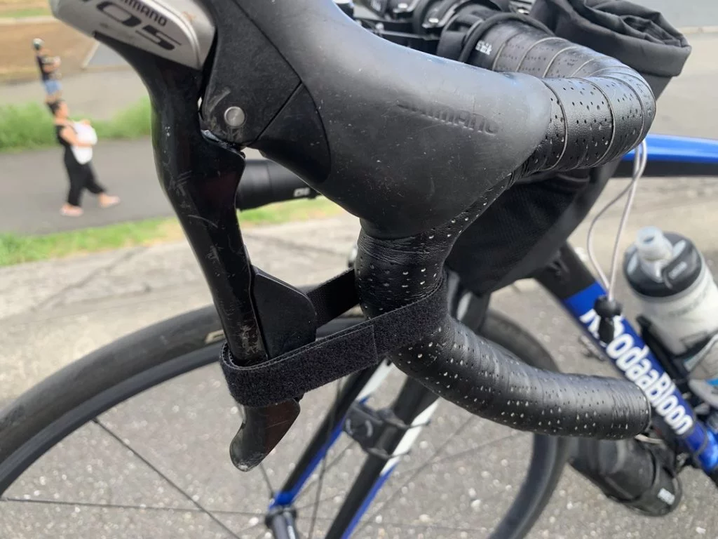 このように『めだたんぼー』を使うと簡単、かつスタンドを目立たせることなく、ロードバイクを自立させて写真を撮ることができます。軽くてコンパクトなので、サドルバッグやジャージの背中のポケットにも入れて持ち運びもしやすい。