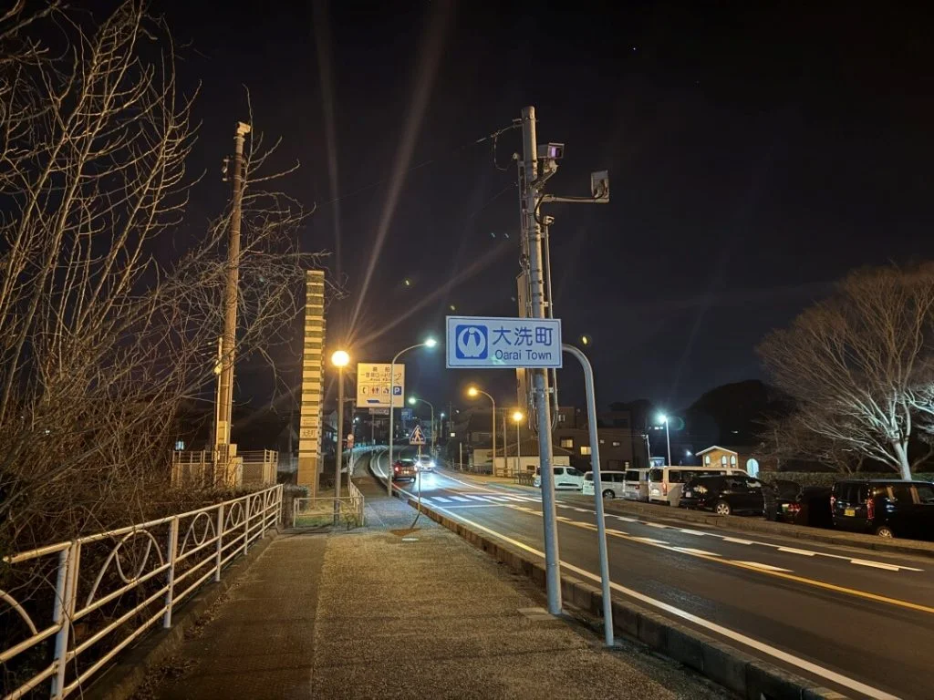 そこを過ぎると交通量の少なめな県道を繋いでいき、ひたちなか市に入る頃には真っ暗になりました。