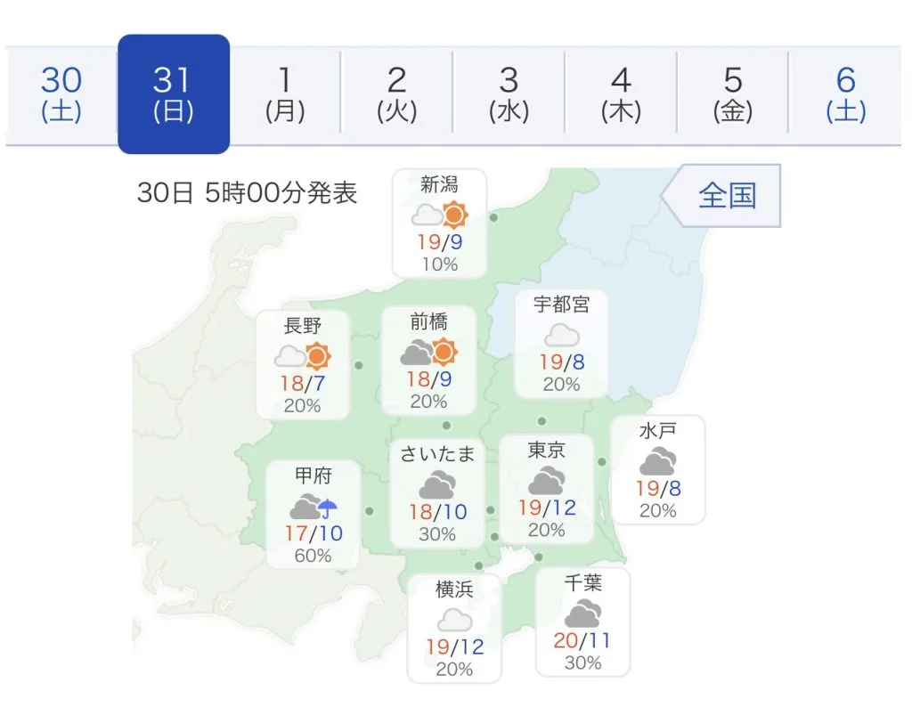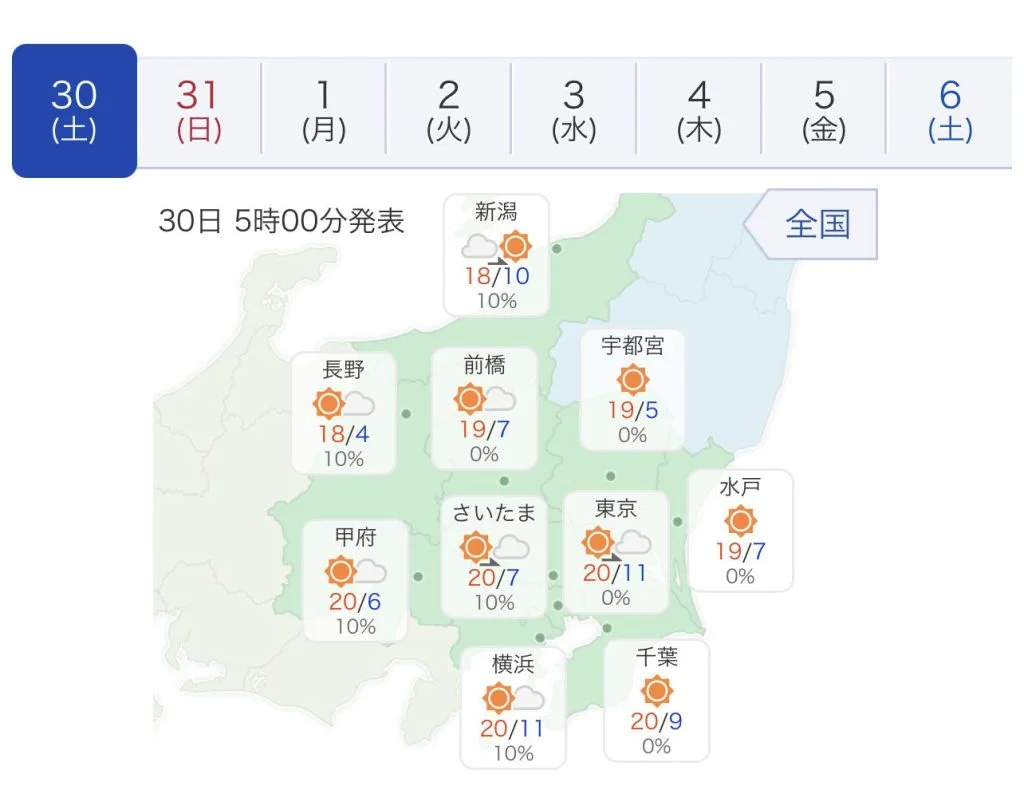 出走予定の10月30日(土)、31日(日)ともに、コース上の地域で雨が降ることはありません。気温もそこまで低くはならない様子。ですが、先週の BRM1023東京600関東一周では、明け方、指先の感覚がないくらい冷え込んだので油断は禁物です。