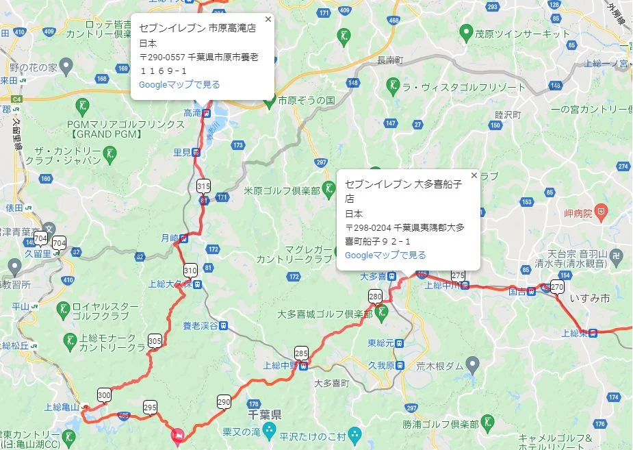 ですが、早朝出走する際、注意する点が1つあります。それが房総半島を走る後半の280~340km区間です。大喜多から高滝までの約40kmには24時間営業のお店がなく、深夜に走ると自販機くらいしかありません。大喜多町でしっかりと補給をし、挑む必要がありそうです。