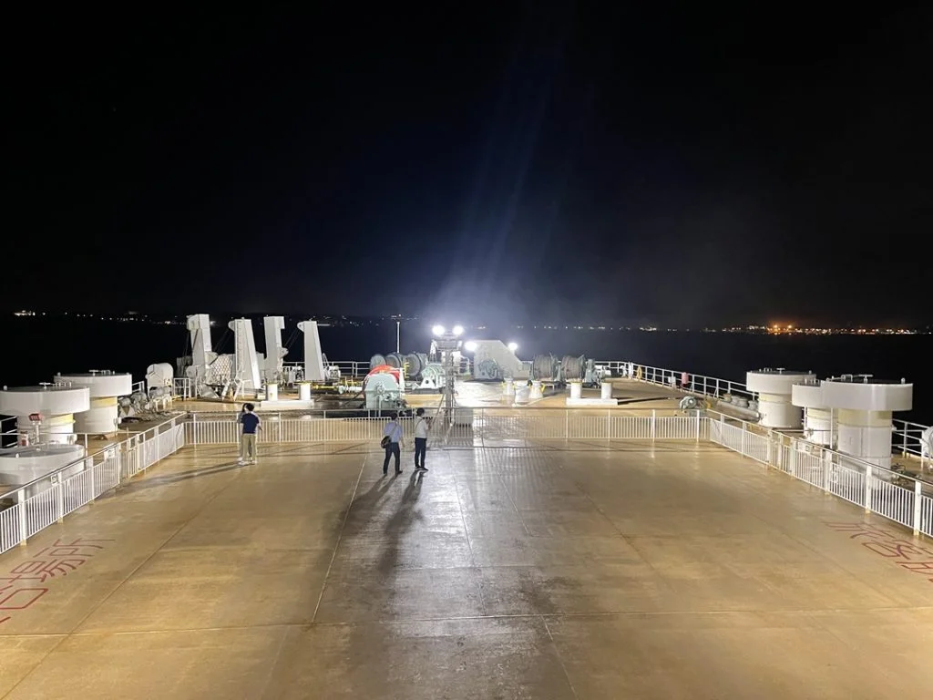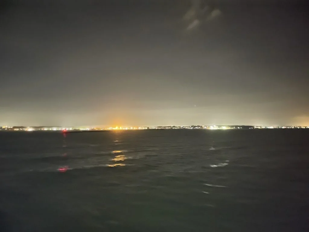 しばらく進み、日立市の辺りでしょうか。遠くに煌々と明かりの灯る様子を眺めながら船は進んでいきます。
