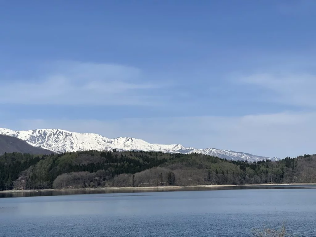 白馬で見ていた北アルプスの山並みが、湖の深い青と相まってとても綺麗です。