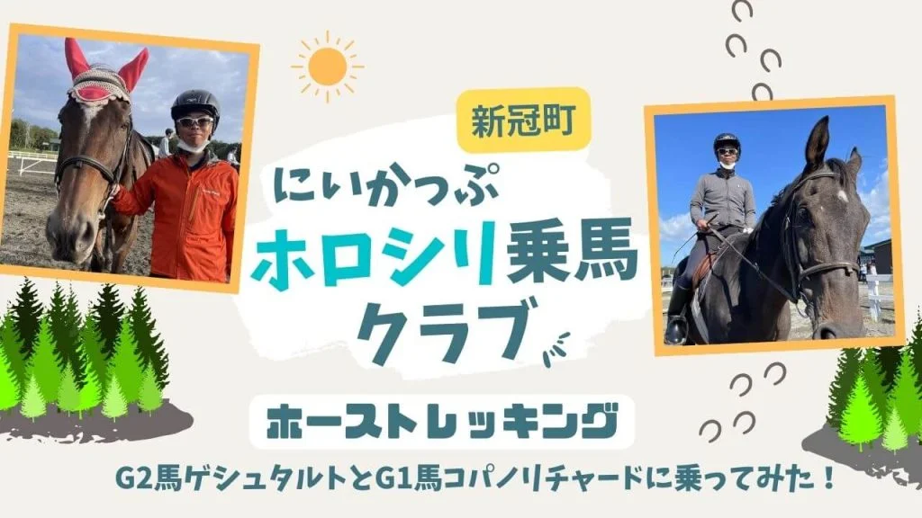ホロシリ乗馬クラブでG1馬コパノリチャードに乗ってきた!【北海道日高馬産地旅】こんにちは。ノブです。 北海道日高地方の馬産地を巡る自転車旅に出かけてきました。今回は新冠町の『にいかっぷホロシリ乗馬クラブ』で乗馬体験。かつての競走馬たちに乗ってホーストレッキングをしてきました。 馬産地には守るべきマナーがあります。牧...