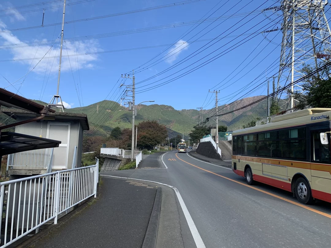 ヤビツ峠でキツイ区間で有名な「蓑毛」。この写真は、そのちょっと前のところ。結構な頻度でバスが通過しています。山中に入っても狭い道路でバスと鉢合わせになることがありますので、要注意です。