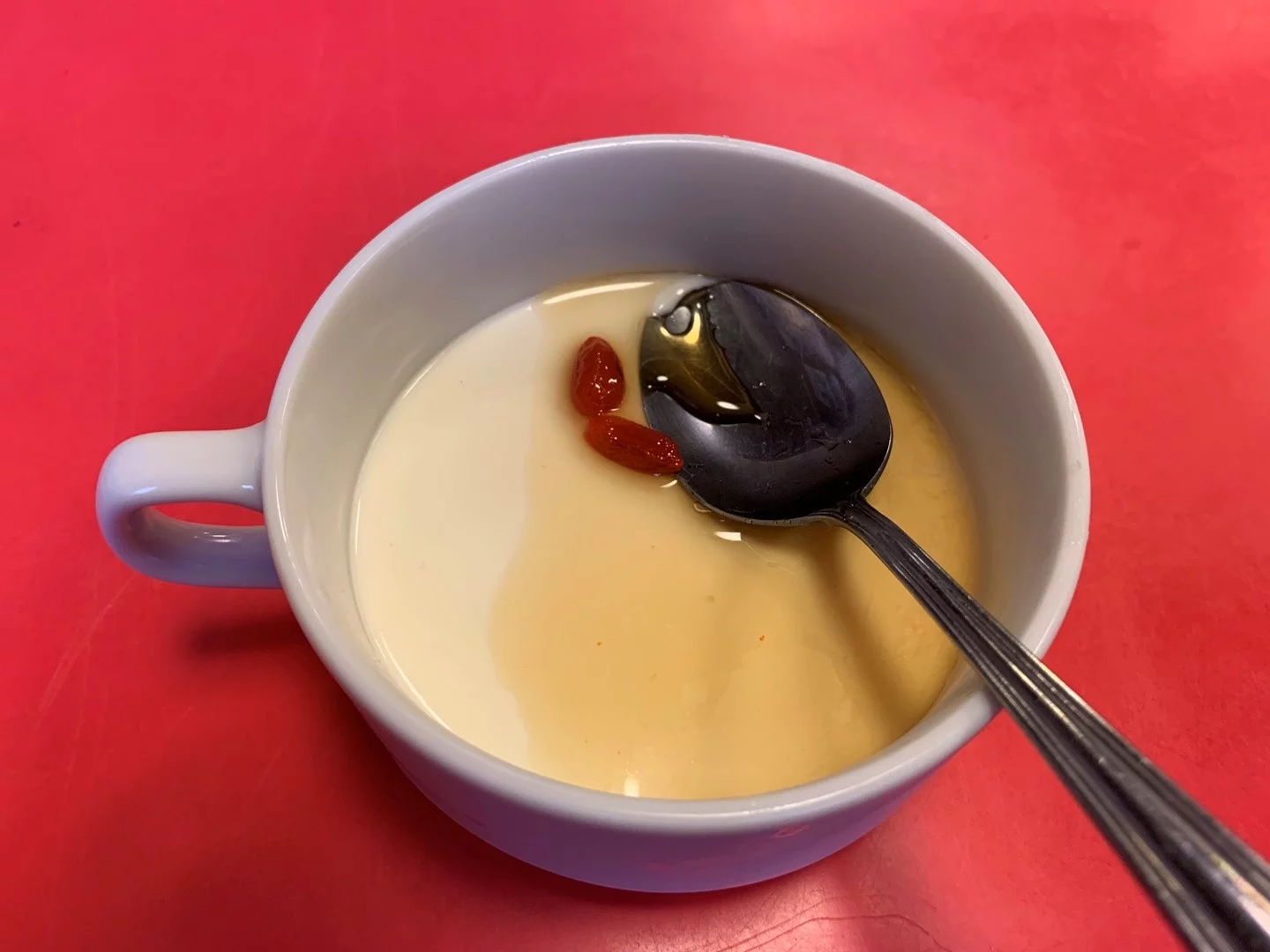 食後に杏仁豆腐が付いています。お腹のほどんどが唐揚げで満たされた状態でしたが、優しい甘さでスルスル入っていきました。